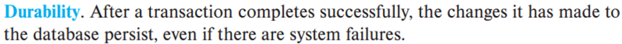 트랜잭션이 성공적으로 마쳐진 경우 이는 데이터베이스에 무조건 반영되야 한다.