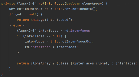 리플렉션을 이용하는 해당 메소드를 통해 interface 를 얻는 방식이였다.